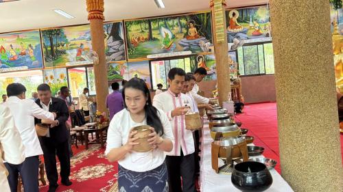พช.อำเภอกุดข้าวปุ้น ร่วมกิจกรรมโครงการ “นายอำเภอชวนทำบุญวันพระ สวมใส่ผ้าไทย ใส่บาตร เยี่ยมญาติผู้ยากไร้