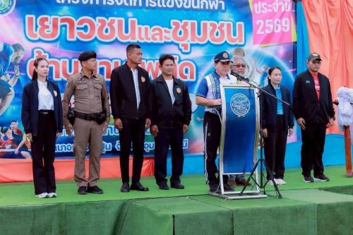 #พช.อำเภอกุดข้าวปุ้น โดยนายทรงศักดิ์ โภคทรัพย์เขียวขำ พัฒนาการอำเภอกุดข้าวปุ้น พร้อมด้วยหัวหน้าส่วนราชการ สมาชิก อบจ. คณะผู้บริหารเทศบาลตำบลกุดข้าวปุ้น กำนัน/ผู้ใหญ่บ้าน นักกีฬา และประชาชน ร่วมเป็นเกียรติพิธีเปิดกิจกรรมการแข่งขันกีฬาเยาวชนและชุมชนต้านยาเสพติด เทศบาลตำบลกุดข้าวปุ้น ประจำปี 2569